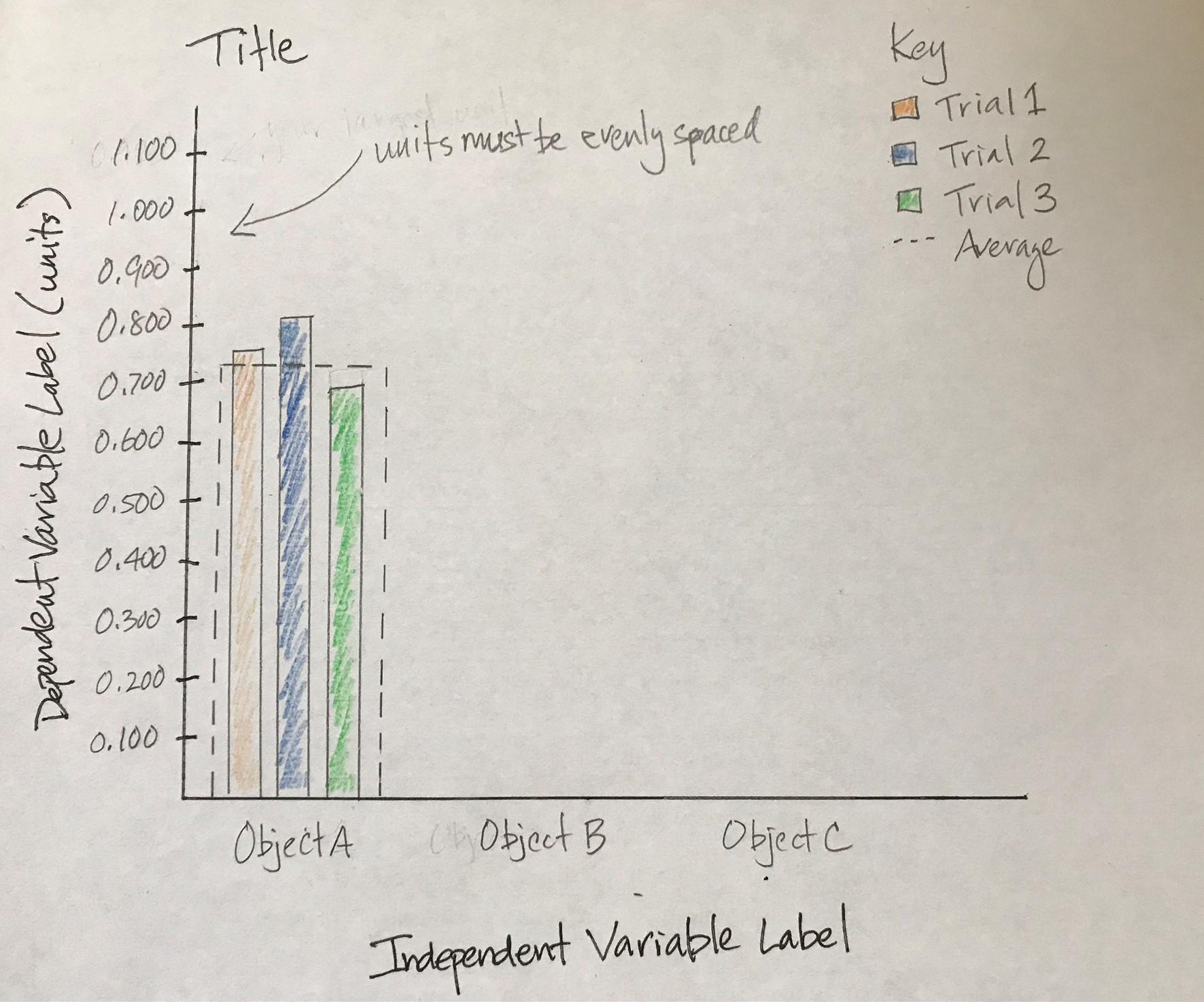 3. Graph: see sample graph for setup (3 trials--3 bars & average--dotted bar); ask for help before this is due